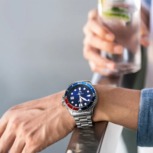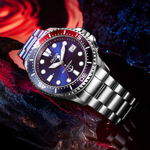 表圈以撞色设计,更具辨识度,添加倒计时功能,让实用性更广,满足浮潜级防水性能,水下密封防护不漏水,痛快畅游。