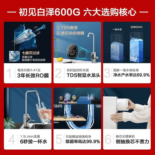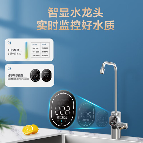 智能水龙头的设计,通过显示实时直饮水的TDS值,让使用者能掌握净水状态,在水质好的情况下饮水。即滤即饮,喝水方便且安全。