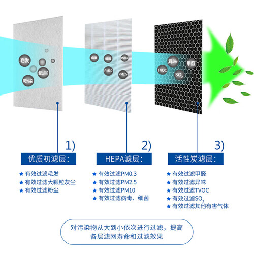 采用纳米二氧化硅材质,化学稳定性好,无惧高温,吸附力强。双滤网有效吸附PM2.5、甲醛、异味等污染,带来清新空气。