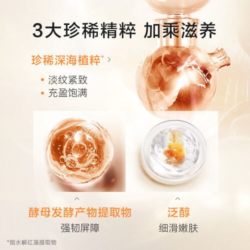 添加3重珍稀精粹,可以淡化肌肤纹路,补充胶原蛋白,同时还能舒缓受损肌肤,改善粗糙,令肌肤细腻柔滑,紧致嘭弹。