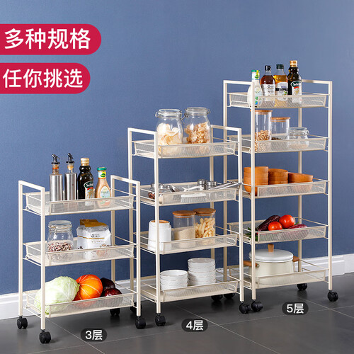 此款采用四层设计,能容纳下更多物品,轻松解决物品收纳问题;蜂巢透气网篮设计,可放置瓜果蔬菜,保持新鲜。