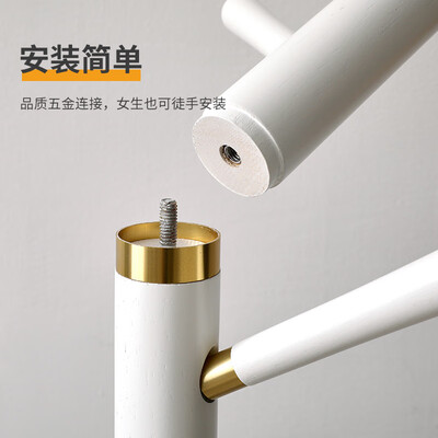 此款衣帽架选用进口橡胶木,质地坚硬,承重力强,经久耐用;采用品质五金连接,安装轻松省力,牢固不易脱落。