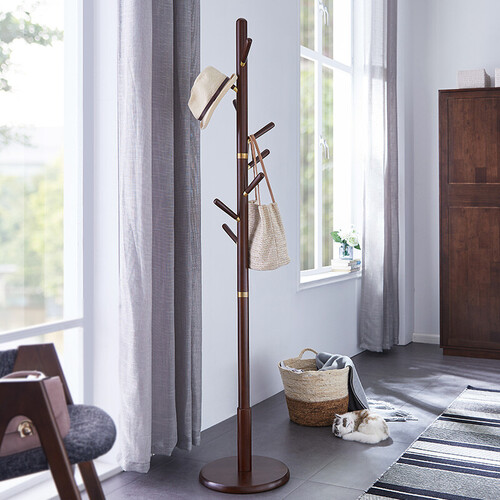 该款衣帽架采用橡胶木材质,具有较好的耐腐蚀性,不容易损坏,使用寿命更长。采用加宽底盘,具有较好的稳定性,更加稳固不易倒。