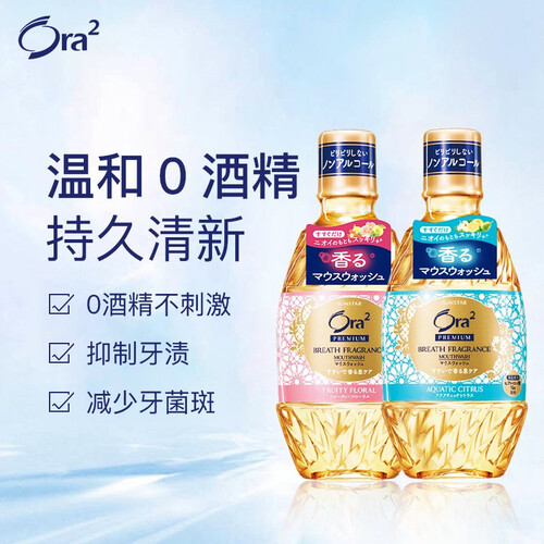 香氛型的漱口水,带有玫瑰花香和柑橘橙香口感,同时添加保湿成分,告别干燥口腔,深层清洁牙齿污垢,能让口气持久清新。