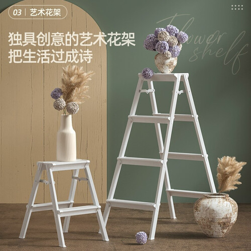 表面经喷砂和电镀工艺处理,光滑细腻,静态可承重300斤,久用不生锈。小巧的身形设计,可当梯子、花架,轻松塑造个性空间。