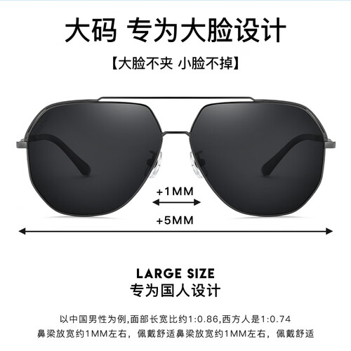 黑色镜片大气潮酷,多边形几何设计框架,双梁设计适合不同脸型。