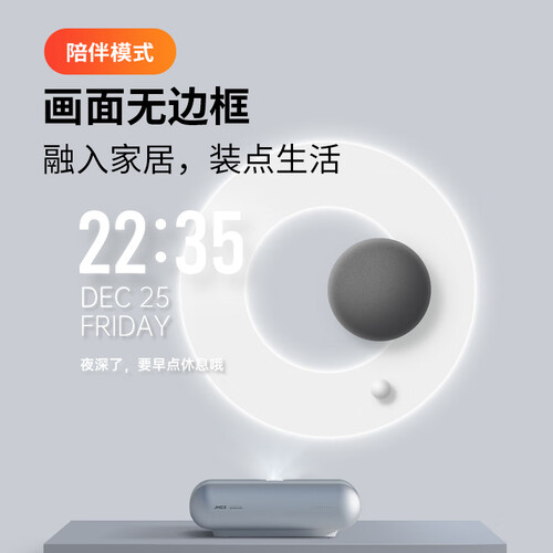 能够在墙上投射悬浮时钟与自定义讯息看板,还能随心切换壁画,尽显时尚美学。