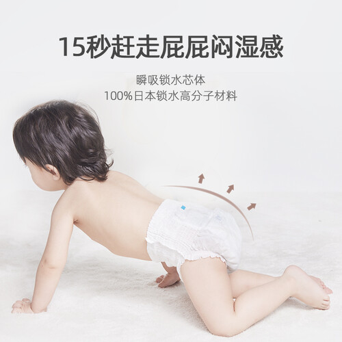 这款专为好动宝宝研发的拉拉裤,解锁宝宝各种熊姿势。一体式裁剪,减少束缚与压力,宝宝穿着更舒适。瞬吸锁水芯体,量大也能瞬吸干爽。