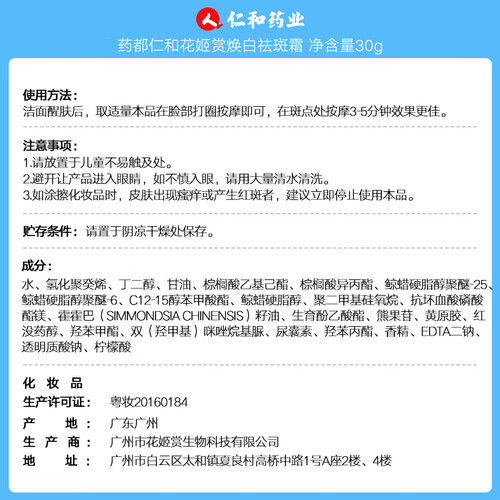 同仁堂 美白祛斑面霜