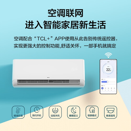 支持WIFI智控连接,通过手机APP操作,可在回家之前开启空调。60℃高温强冷技术,带来舒适温度,无惧炎热夏季。