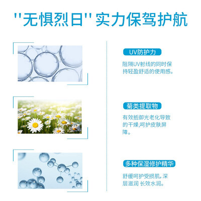 质地水润轻薄,快速在皮肤表面形成保护膜,长效防水防汗。添加菊类滋养精华,提升肌肤保湿力和防护力,呈现健康状态。
