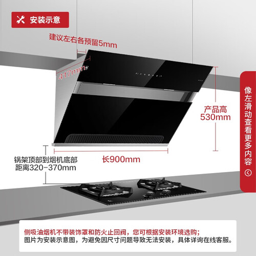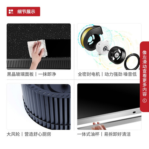 三速调节风速,轻松应对重油爆炒,260MM大风轮,低噪静音,延时自动关机功能,有效清除残留废气油烟,还你健康厨房环境。