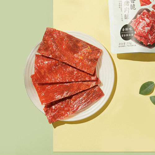 精选猪后腿肉,具有瘦肉多油脂少特点,口感更加香脆。经过传统工艺脱水,更好的保证猪肉铺的香脆口感,营养美味。