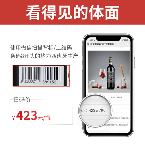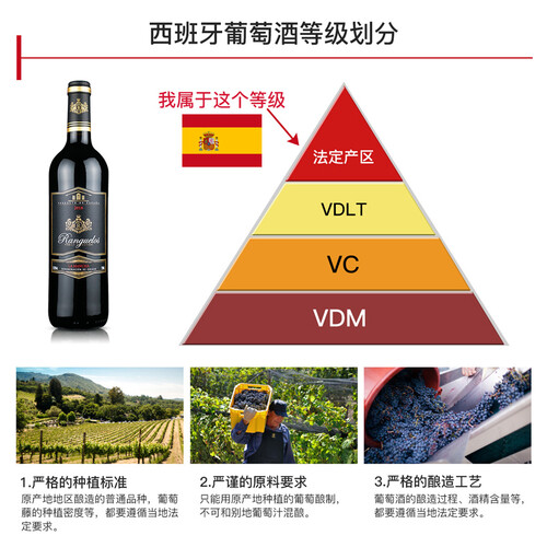 葡萄酒源自西班牙原装进口,不添加任何色素,散发出黑色水果香气,单宁细腻丝滑,口感柔和,适合重要约会饮用。
