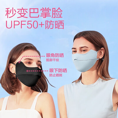 百搭的黑色,口罩采用科技防晒面料,轻薄透气让皮肤好呼吸。配以护眼角的设计,可以得到更好防晒。