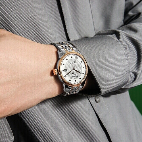 纤细的金色指针点缀,搭配闪亮的镶钻时标,做工精致出众,尊贵大气,彰显不凡气质。自动机械机芯设计,做工考究,历久弥新。