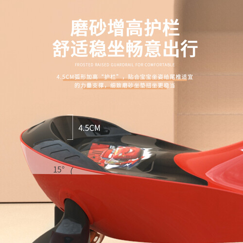 采用优质环保材质制作,安全无异味,陪伴孩子健康快乐的长大。整个车身精细化打磨,保障不划伤宝宝幼嫩肌肤。
