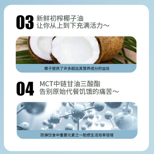 添加MCT成分,提升饱腹感,有效避免乱吃零食充饥。不添加蔗糖成分,好喝无负担,家人可以安心饮用。