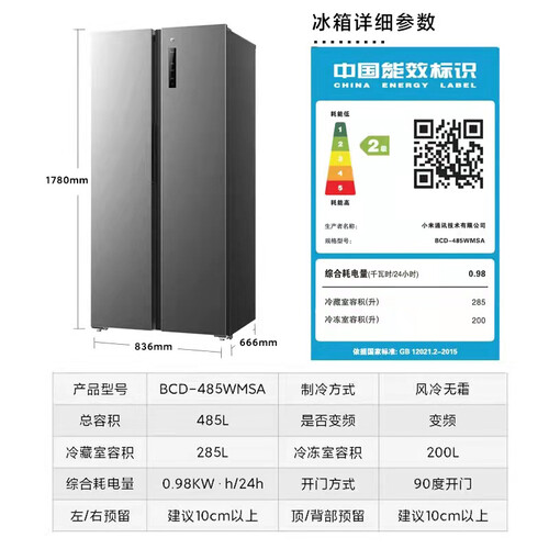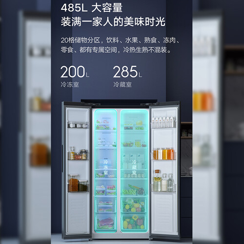 可连接米家APP操控,随时随地调节模式温度,方便又省心。360º环抱立体送风,持久保鲜食物,肠胃敏感人群也能吃得放心。