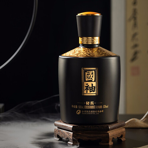 整体瓶身采用黑色主调,字体采用烫金工艺,增添了酒体的稳重与神秘。选用宜兴紫砂陶坛陈年窖藏,每一瓶都是上乘老酒品质。
