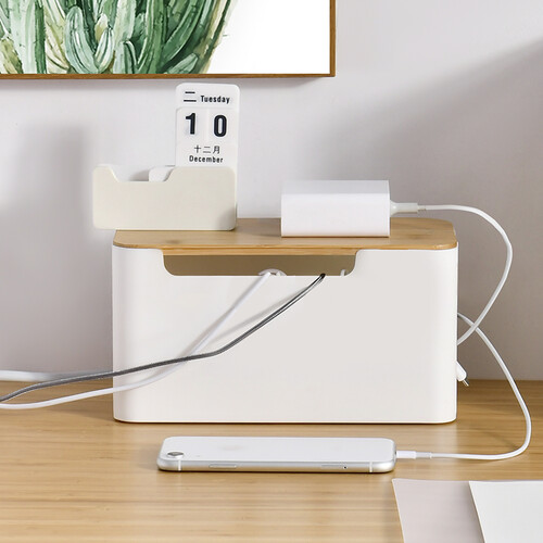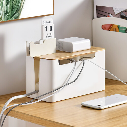 收纳盒顶部可置物,加以多开口设计,可以收纳归置杂乱的排插与线缆,使桌面整洁。底部加厚的设计,可以保护盒身不被划伤,使用安心。