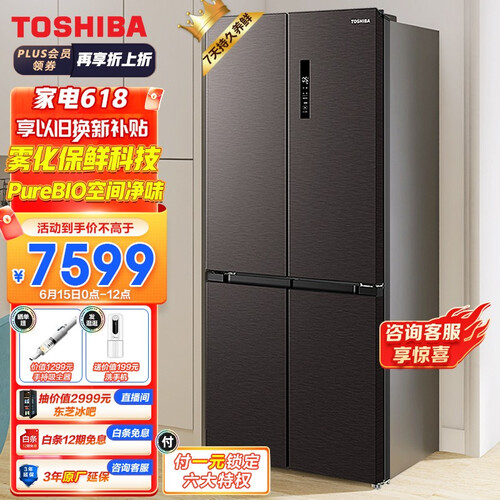 东芝十字对开门独立双冷却冰箱