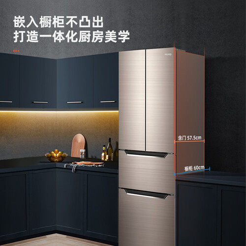 这款冰箱特地设计了一个零度保鲜区,鲜肉类食材放在这里,无需解冻就能切得开。575厘米机身厚度,纤薄省地,小户型适用。