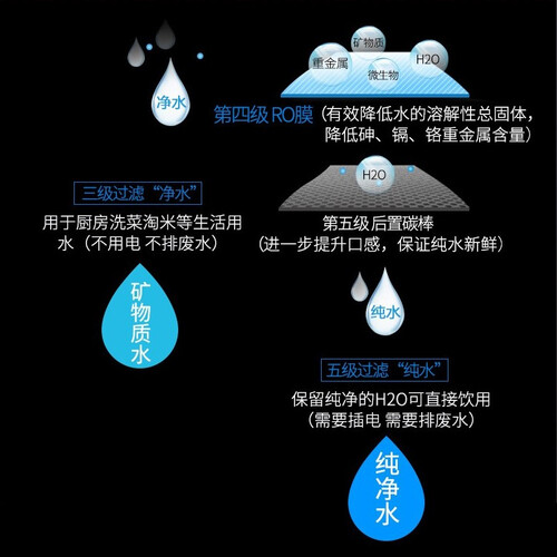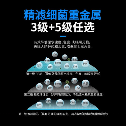采用五级精滤设计,深层过滤有害物质,不再为家人饮水健康担心。侧显的机身设计,滤芯和水质情况直观可见,查看更便捷。