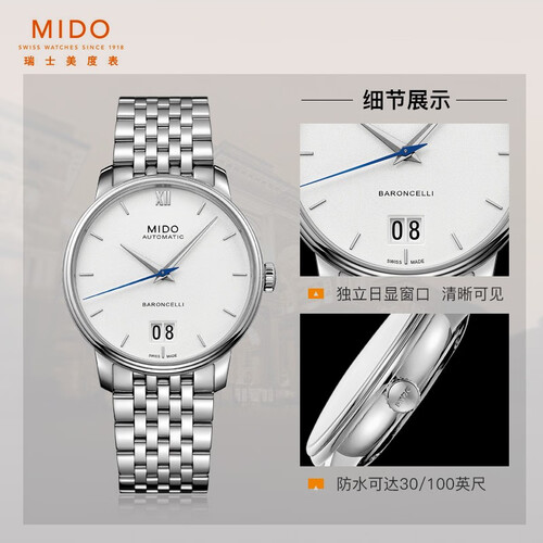 白色简洁表盘,时尚大气,能够轻易辨识时间,银色的刻度搭配蓝色的表针,精致简约中,透露出商务内敛的风范。