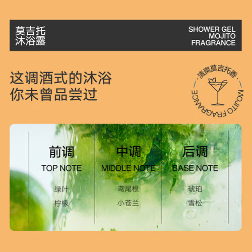神秘莫吉托香样式款,多调香味加持,沐浴体验佳。采用无皂基配方设计,不添加刺激性成分,免肌肤受损,维持肌肤健康状态。