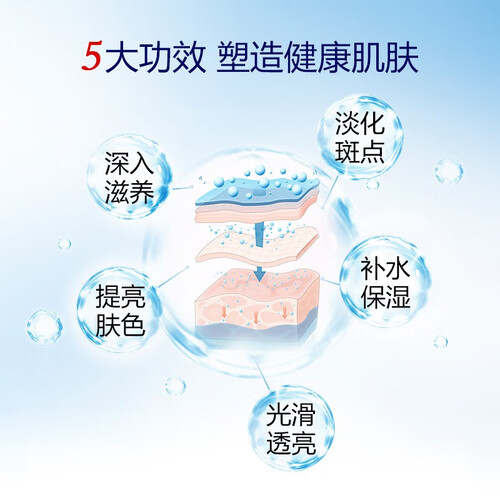 柔肤水中添加有马齿笕、透明质酸钠等物质,均匀提亮肤色,缔造顺滑柔亮美肌。添加有公认的三大美白淡斑成分,减少色素的沉积。