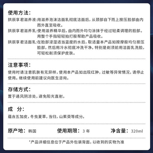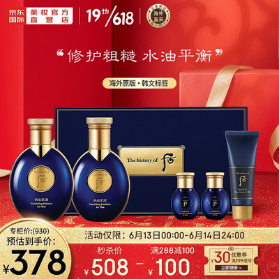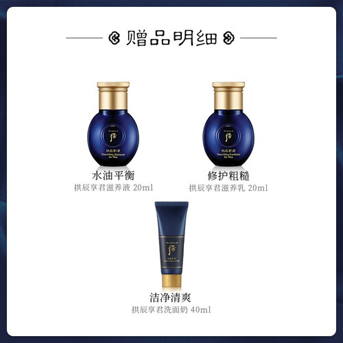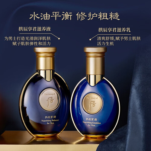 来自whoo的滋养套装,适用于各类男性肤质。甄选鹿茸、冬虫夏草等珍萃,为肌肤补充能量,滋润保湿并提升弹性。