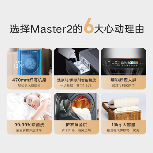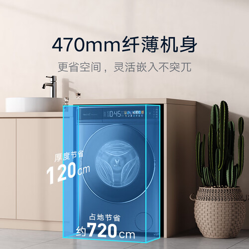 纤薄的机身设计,能够随意嵌入各种场景,为你释放出更多活动空间。臻彩大屏设计,极具艺术美感,洗衣状态可清晰呈现。