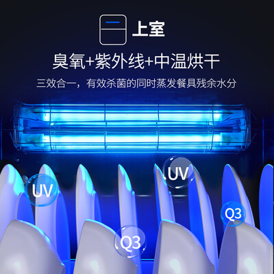 上下室可独立工作,可根据实际需求选择,减少电量消耗。中温烘干技术,在搞定残留水渍的同时,还能防止餐具损伤。