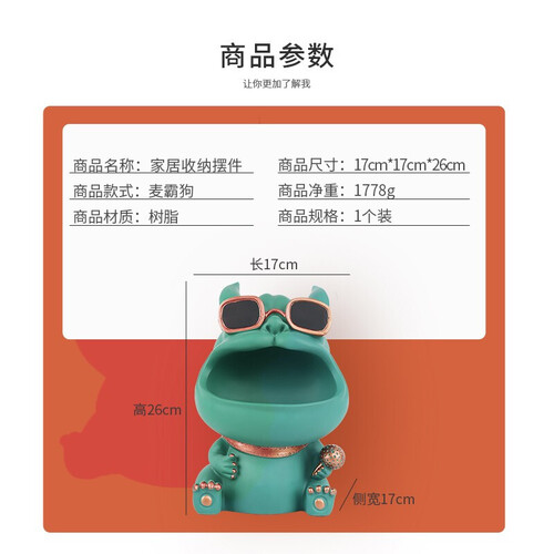 张大嘴巴的斗牛犬造型显得可爱,张口处容量大,还能当做收纳使用。树脂材质制作,具有很好的稳定性,适合多种场合使用。