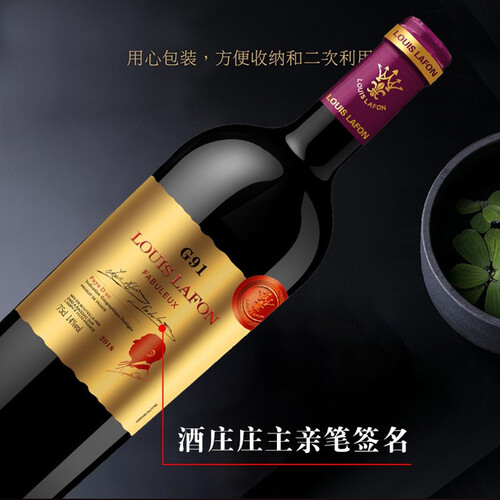 真实法国进口红酒,品牌标识清晰可查,严格密封。以赤霞珠、美乐、歌海娜葡萄等多种原料混合酿制,饱满丰盈。