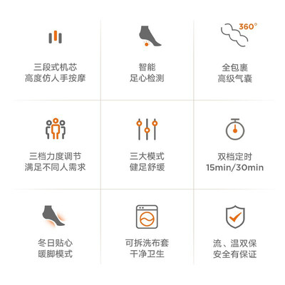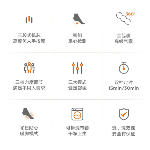 3D按摩机芯配置,提供分段式按摩享受,充分按摩整个足部。360度气囊全包裹,贴合穴位更加准确,按摩后更加放松。