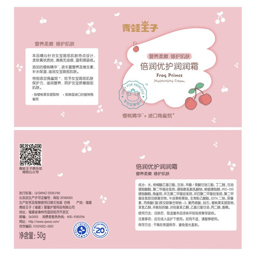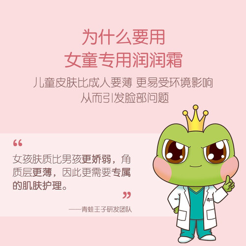 童年精品“青蛙王子”,采用进口角鲨烷为核心成分,萃取樱桃精华,使其富含VC,修复肌肤受损。质地润滑,亲肤好吸收。