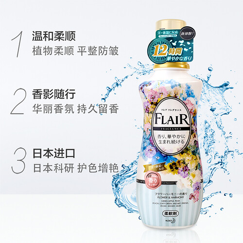 界面活性剂、安定化剂成分,防静电产生,穿衣舒适柔软,花香持久。