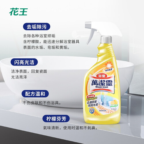 这款产品专为浴室清洁设计,轻松解决顽固污垢及各种陈年水垢,并散发清新柠檬香,去除浴室异味,且使用时不刺鼻。