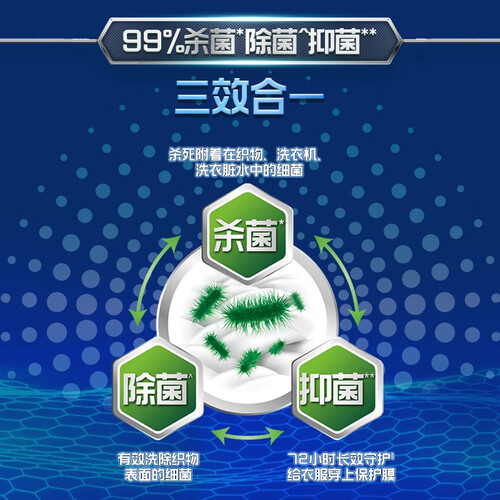 运用先进科技,能去除附着在织物上、在洗衣机中的金黄色葡萄球菌等病菌,让衣物更加洁净亲肤。