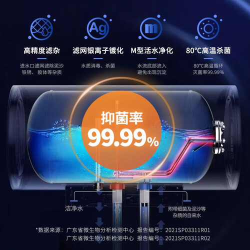 防电墙+防电闸双重安防系统,从源头解决漏电隐患,沐浴更放心。热水输出率高达80%,高于国家一级能效70%的标准。