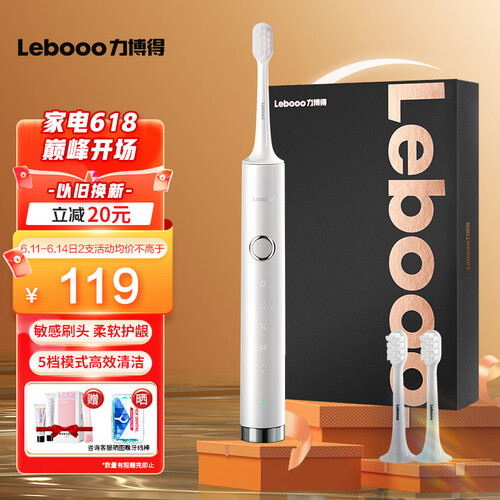 拥有5道镀膜涂层工艺,触感舒适,拿握不易打滑。搭配智能定时功能,提示换区刷牙,刷出净白笑容,出街更自信。