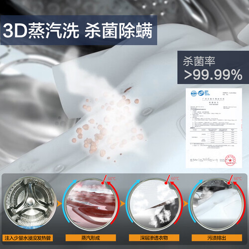 冷水洗涤模式,省水省电同时保护衣服纤维不褪色不变形。而且96℃内筒全自动清洁,有效抑制细菌滋生,防止二次污染。