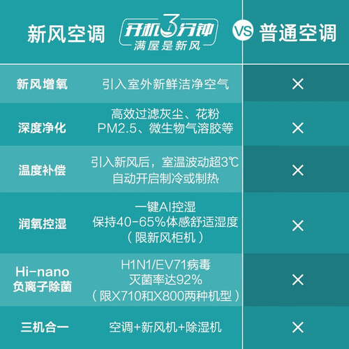 采用新风量的设计,能够有效增加空气氧气,深度净化更健康。一键防直吹功能,避免直吹,呵护全家睡眠。