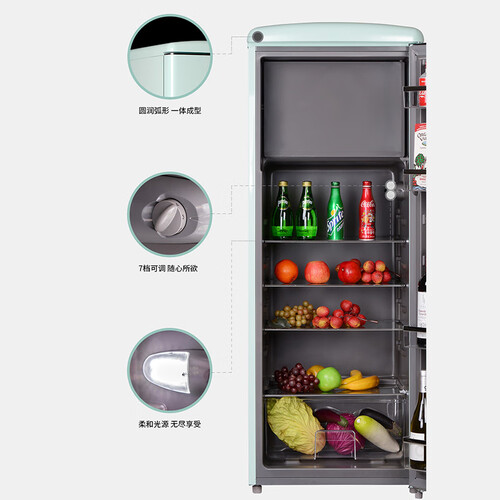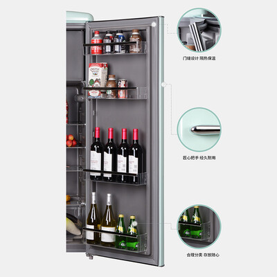 mini的设计体型、欧式复古冰箱外形设计。超静音与节能功效,不占地复古欧式冰箱,独居实用刚刚好。