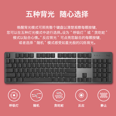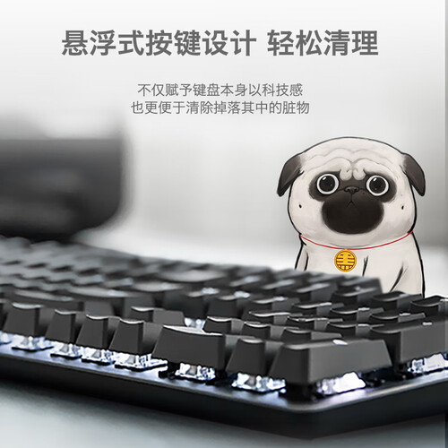 自带五种背光模式可以随心选择,满足你的多种使用需求;弧形键帽布局,打字更加舒适;阳极氧化铝顶盖,更加坚固耐用。