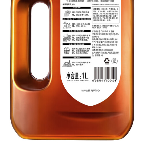 除菌率高达99.999%,有效消毒,更洁净,呵护家人健康,衣物、地板、浴室都可使用,用途广泛。可抓握的瓶装设计,携带方便。