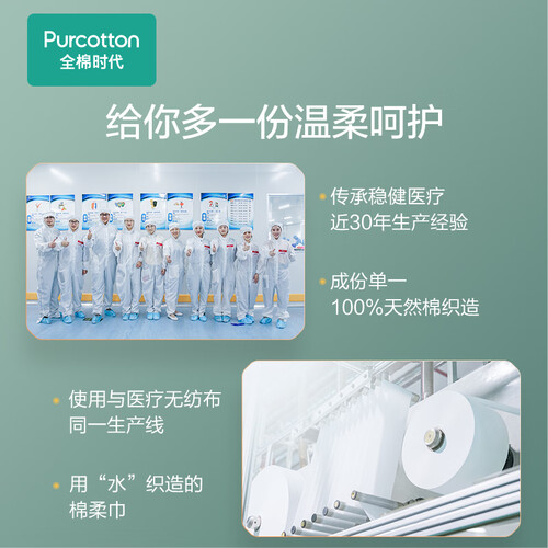 精选黄金棉产地高品级棉花,纸巾更柔软,使用舒适无异物感,孕妇婴儿都可以用。加强吸水效果,日常洗脸擦桌子都可以,一物多用,节省经济。
