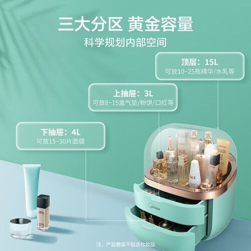 三大分区设计,合理规划空间,可以分类存储物品。双温区锁鲜,给护肤品一个保鲜空间。